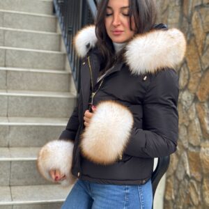 Mid Basic Jacket “Riri” with Fur on Sleeves decorated with Leather and Natural Fur