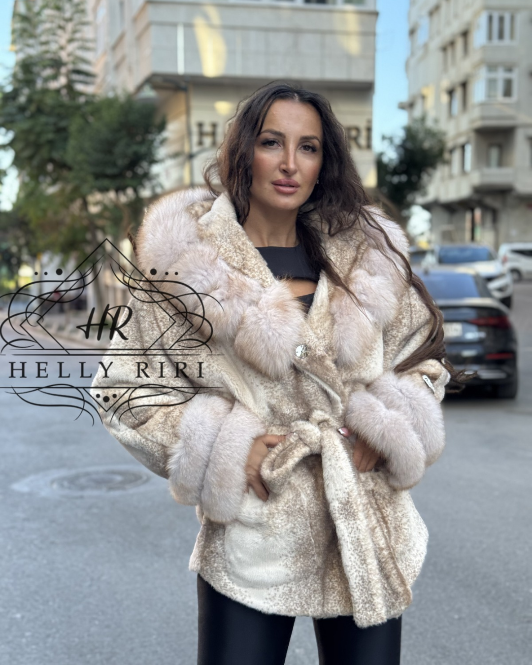 New model of jacket from Helly Riri collection. With Fox fur trim outside and additional on the sleeves. This coat will be your best companion for coldest outdoor activities. Made of alcantara highest quality and it will be your best companion for coldest outdoor activities.