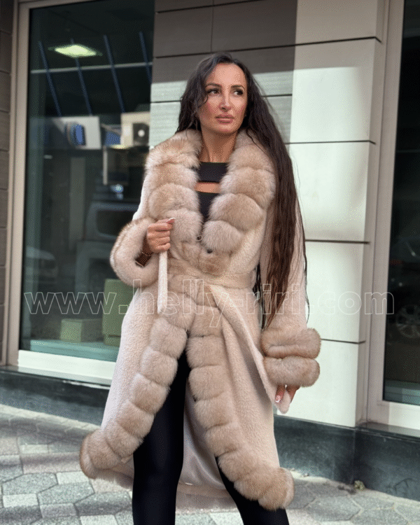 New beautiful coat in Helly Riri Collection. With genuine shadow fox fur around neck and along the entire length of the coat make this coat to exudes luxe sophistication. It’s available in few colors.
