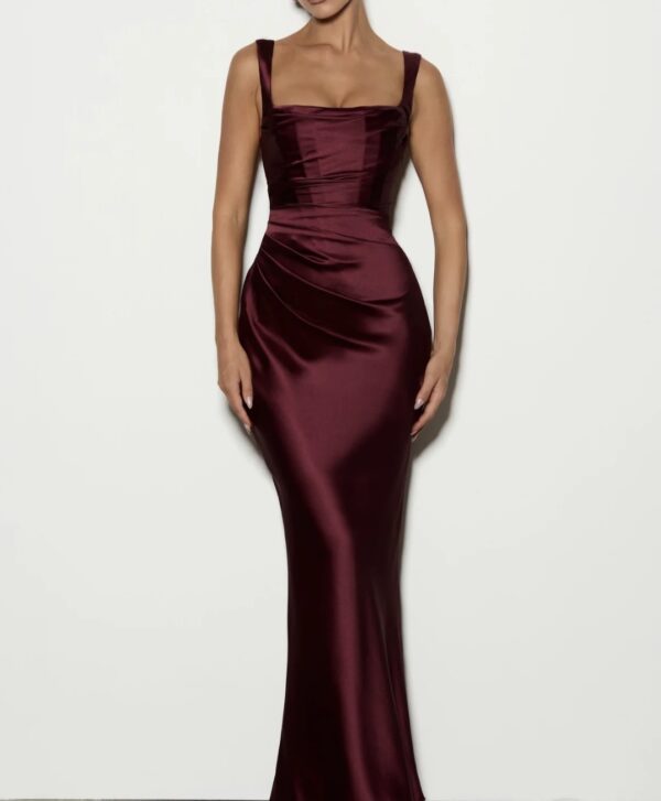 Ariadella is a sleek, figure-hugging gown crafted in smooth satin that drapes elegantly along the body. The structured square neckline and fitted bodice create a refined silhouette, while the delicate sheer gloves and matching neck detail add a touch of vintage glamour. Sophisticated and feminine, Ariadella is designed for evenings that call for timeless elegance with a modern edge.