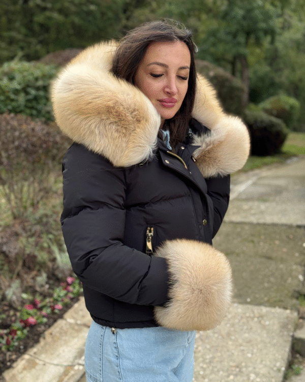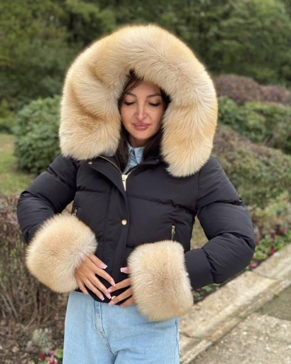 Black Matte Helly Riri Jacket with Shadow Fox Fur