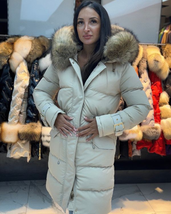 11 reviews for Long Basic Jacket Riri decorated with Leather and Natural Fur