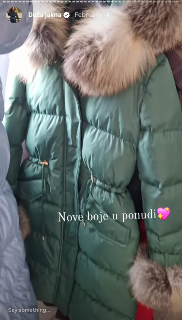 Fantastiฤan materijal i krzno koje se uopลกte ne linja. Naruฤila sam po meri i stvarno sam ispoลกtovana maksimalno. Sve pohvale za devojku koja mi je pomogla oko svega๐ฅฐ