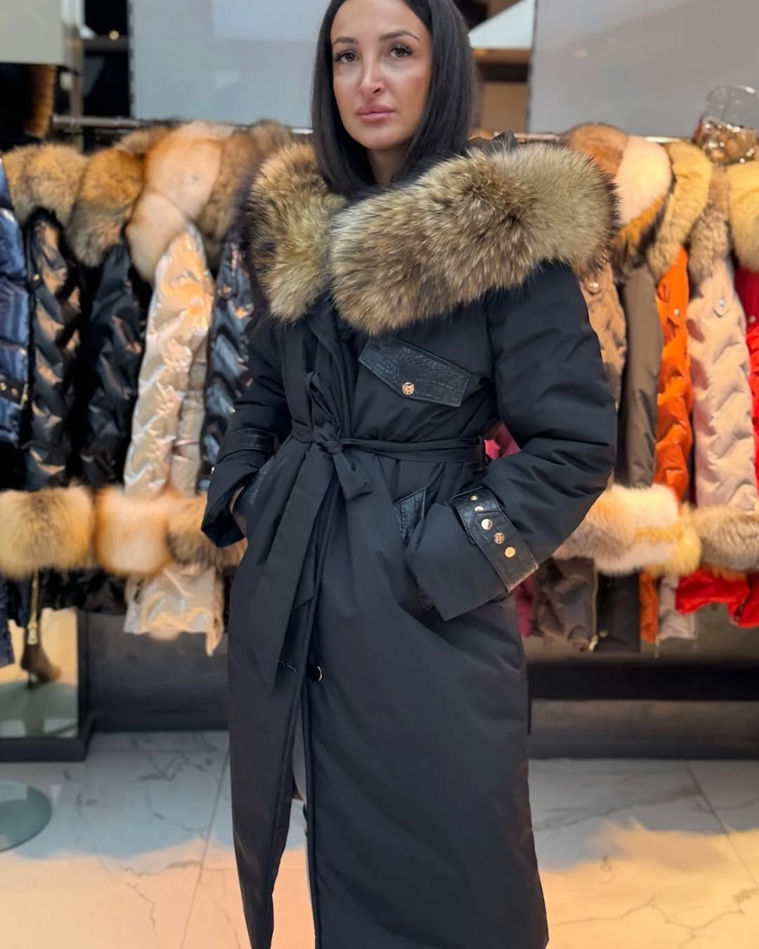 - Trim: genuine Golden Fox fur;