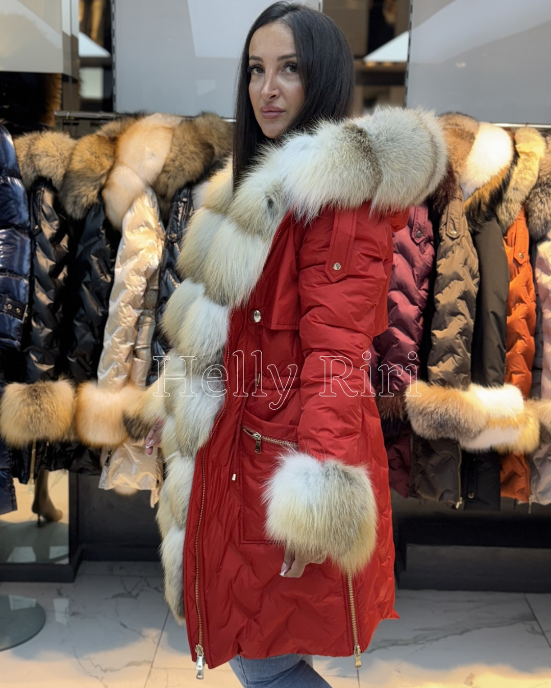 One of the best selling parka from Helly Riri Collection. With rich colorized Argentine Fox fur trim outside and additional on the hood and sleeves too. This parka will be your best companion for coldest outdoor activities. Made of high-quality waterproof fabric interior filled with microfiber, can effortlessly withstand temperatures up to -30ยฐC/-22ยฐF.