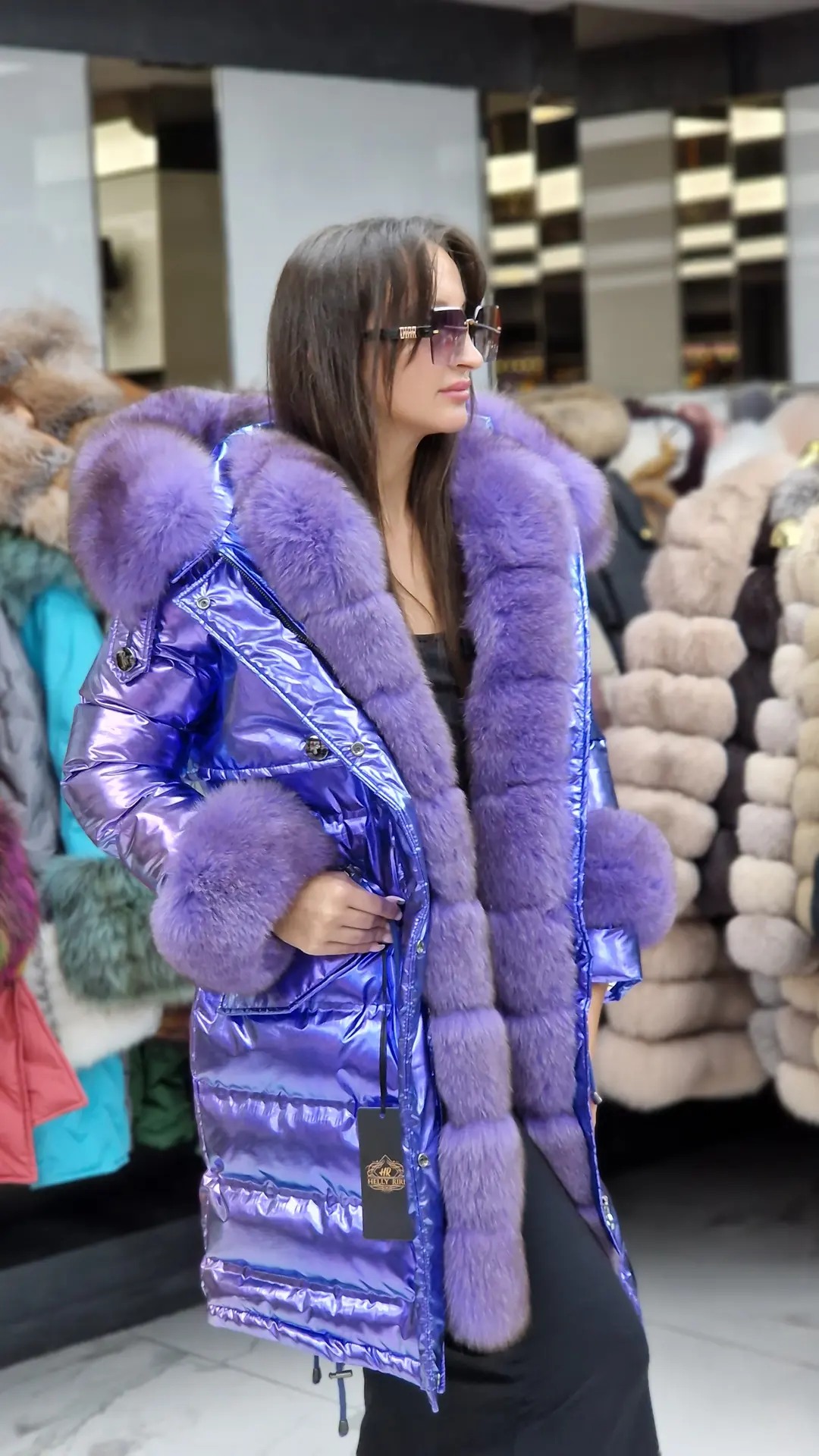 - Sleeve hemline is decorated with genuine Frost Fox fur;