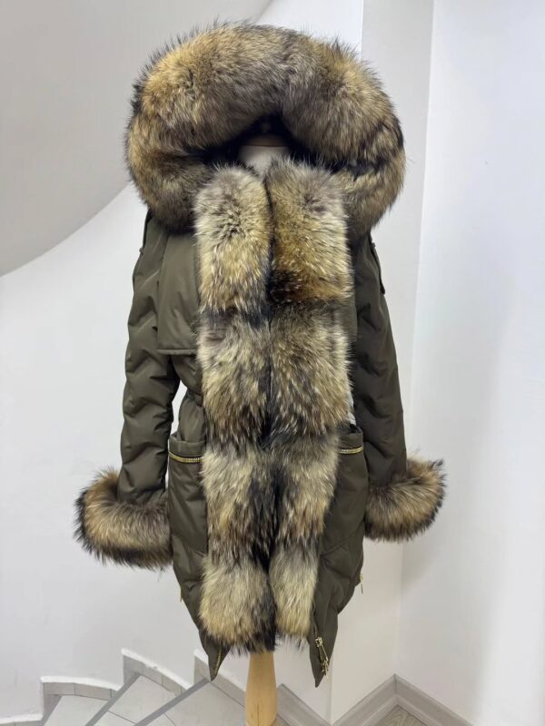 One of the best selling parka from new Collection Helly Riri. With genuine Racoon fur trim outside and additional on the hood and sleeves too. This parka will be your best companion for coldest outdoor activities. Made of high-quality waterproof fabric interior filled with microfiber, can effortlessly withstand temperatures up to -30ยฐC/-22ยฐF.