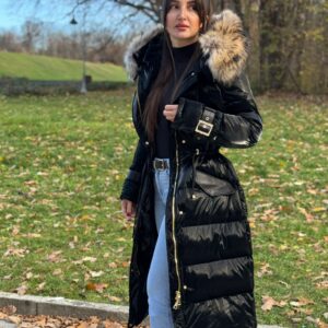 Long Basic Jacket Riri decorated with Leather and Natural Fur